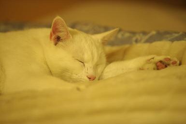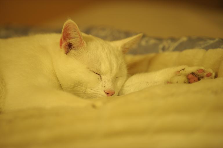 Keywords: solid white cat cat rest ro peace relaxation power-nap paws footpad indoor dry hot