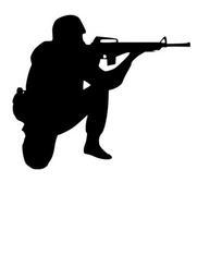 Keywords: solider crouch rifle aiming black silhouette pointing gun military army war uniform grenade helmet