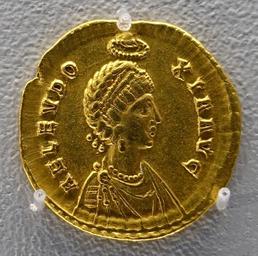 | View Original: | Solidus of Arcadius, for Eudoxia, Constantinople, 402-403 AD, gold - Arthur M. Sackler Museum, Harvard University - DSC01500.jpg (1035x1027) | |||