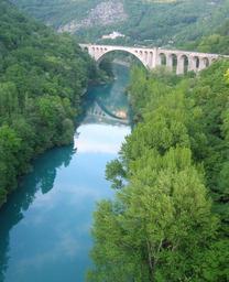 Keywords: SolkanskiMost1.jpg Solkan bridge largest stone-arch bridge in the world Slovenia own 2007-04 Sl-Ziga Solkan Bridge Water reflections of bridges in Slovenia Water reflections of clouds in Slovenia