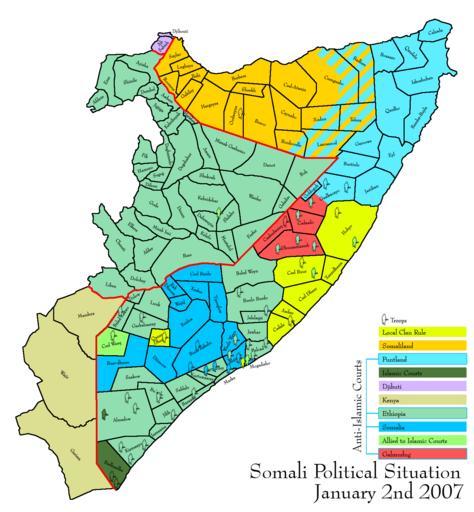 Keywords: Somali land 2007 01 02.png Political Situation in Somalia as of January 2nd 2007 2007-01-07 own assumed Ingoman Maps of Somali Civil War