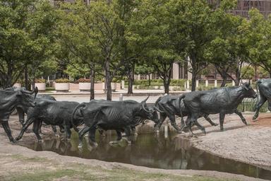 | Keywords: Some of the 70 bronze steers in a large sculpture in Pioneer Park in Dallas, Texas, that commemorates nineteenth- century cattle drives that took place along the Shawnee Trail, the earliest and LCCN2014632596.tif 1 photograph digital tiff file color Notes Forms part of Lyda Hill Texas Collection of Photographs in Carol M Highsmith's America Project in the Carol M Highsmith Archive ; Sculptor Robert Summers Source A comprehensive guide to outdoor sculpture in Texas C Little 1996 ; Title date and keywords based on information provided by the photographer ; The trail passed through Austin Waco and Dallas until the Chisolm Trail siphoned off most of the traffic in 1867 The 70 steers and three trail riders were created by artist Robert Summers of Glen Rose Texas Each steer is larger-than-life at six feet high; altogether the sculpture is the largest bronze monument of its kind in the world Set along an artificial ridge and past a manmade limestone cliff native landscaping with a flowing stream and waterfall help create the dramatic effect ; Gift; The Lyda Hill Foundation; 2014; DLC/PP-2014 054 ; Credit line The Lyda Hill Texas Collection of Photographs in Carol M Highsmith's America Project Library of Congress Prints and Photographs Division 2014 Creator Carol M Highsmith Library of Congress Catalog http //lccn loc gov/2014632596 Image download https //cdn loc gov/master/pnp/highsm/28300/28396a tif Original url http //hdl loc gov/loc pnp/highsm 28396 No known restrictions on publication LOC-image highsm 28396 PD-Highsmith Images uploaded by Fæ Lyda Hill Texas Collection of Photographs in Carol M Highsmith's America Project in the Carol M Highsmith Archive The Lyda Hill Texas Collection of Photographs in Carol M Highsmith's America Project Library of Congress Prints and Photographs Division Photographs by Carol M Highsmith |