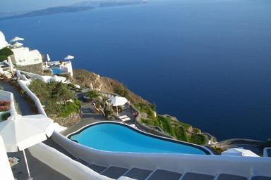 Keywords: Some people have all the luck in Santorin.JPG en House with swimming pool overlooking the caldera in Oia Santorin fr Maison avec piscine avec vue sur la caldera à Oia Santorin Own Dinkum 2006 Cc-zero Oia Greece