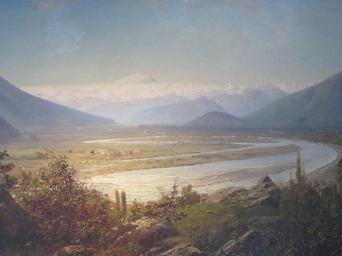 | Keywords: Somerscales - Valle de Acancogua 1881 -detalle.jpg Artwork 1881 oil on canvas 74 x 126 cm Museo Municipal de Bellas Artes Valparaíso object history credit line Con el título Valle del Aconcagua está colgado en el Museo de Bellas Artes de Valparaíso; y con el de Crepúsculo del Aconcagua figura en el álbum Thomas Somerscales Pintor de célebres marinas y serenos paisajes publicado en 2008 por Origo Ediciones en su colección Pintura Chilena del Siglo XIX accession number Rodrigo Fernández Foto cc-by-sa-3 0 PD-old-auto 1927 Uploaded with UploadWizard Museo Municipal de Bellas Artes de Valparaíso Thomas Somerscales |