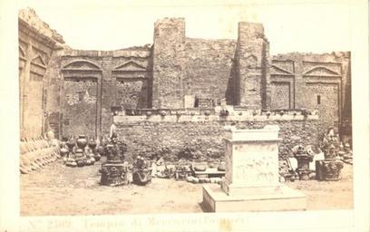 | Keywords: Sommer, Giorgio (1834-1914) & Behles, Edmund (1841-1924) - n. 2309 - Tempio di Mercurio (Pompei).jpg Sommer 1834-1914 Behles 1841-1924 - Tempio di Mercurio Pompei In realtà si tratta del Tempio di Vespasiano Numero di catalogo 2309 Sommer 1834-1914 Behles 1841-1924 - Temple of Mercurius in Pompeii Italy Actually this is the Temple of Vespasian Catalogue 2309 scan Creator Giorgio Sommer <gallery> File Sommer Giorgio 1834-1914 - n 1205 - Pompei - Tempio di Augusto jpg File Sommer Giorgio 1834-1914 Behles Edmund 1841-1924 - n 2309 - Tempio di Mercurio Pompei jpg Image Sommer Giorgio 1834-1914 Behles Edmund 1841-1924 - n 350 - Tempio di Mercurio Pompei jpg </gallery> PD-old-100 Historical images of Pompeii by Edmond Behles Historical images of Pompeii by Giorgio Sommer Ancient Roman objects in Pompeii Historical images of Temple of Vespasian Pompeii |