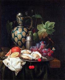 | Keywords: Son, Joris van - Stilleben mit Früchten, Austern und Krug.jpg Artwork Creator Joris van Son oil on canvas 58 x 46 5 cm object history credit line http //www sternburg-stiftung de/gemaelde/popup_151 html accession number 1572 http //www sternburg-stiftung de/gemaelde/bilder/1572 jpg PD-old-100 Paintings by Joris van Son Stilleben mit Früchten Austern und Krug Jugs in art Oil still life paintings 17th-century oil on canvas paintings Paintings with signatures 17th-century still life paintings of fruits Still life paintings with oysters Paintings of grapes Paintings of cherries 17th-century paintings location missing Leaves in art Uploads by Mattes from external sources 17th-century paintings not categorised by year |