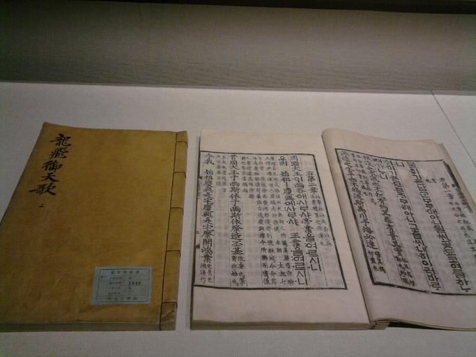 | Keywords: Songs of the Dragons Flying to Heaven in museum.jpg en Songs of the Dragons Flying to Heaven displayed in Seoul National University Kyujanggak Institute for Koreanology Studies 2013-08-09 12 12 54 own Salamander724 Uploaded with UploadWizard Joseon Dynasty Books from Korea Korean language Sejong the Great |