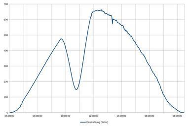 | Keywords: Sonnenfinsternis 2015 Einstrahlung.svg en The Chart shows the total radiation of sunlight during the 20th March 2015 In the morning there was a partial solar eclipse <br>Location Dresden University at roof-top<br>Height 147 m <br> Measuring device Kipp Zonen CMP 11 pyranometer horizontal de Das Diagramm zeigt die solare Gesamtstrahlung im Tagesverlauf des 20 März 2015 an dessen Vormittag eine partielle Sonnenfinsternis zu beobachten war <br>Standort Dresden Universität auf Dach<br>Höhe 147 m<br>Messgerät Pyranometer von Kipp Zonen CMP 11 waagerecht 2015-03-20 own Carsten Pietzsch other versions cc-zero Uploaded with UploadWizard Solar eclipse of 2015 March 20 in Germany |