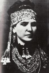Keywords: Sophia Schliemann wearing Treasure A, Troy.jpg en Heinrich Schliemann's wife Sophia wearing gold jewelry from Treasure A ca 1873 ~ 1873 The Spoils of War Elizabeth Simpson other versions PD-old-70-1923 Troy World War II