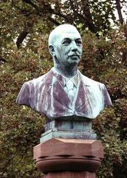 Keywords: Sophus Bauditz Aksel Hansen.JPG Sophus Bauditz Aksel Hansen 1920 København buste af bronze på sandstenssokkel own 2010-09 Orf3us Aksel Hansen Sophus Bauditz Busts in Copenhagen Østre Anlæg