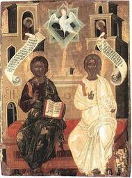 | Keywords: Soprestolie (Venice, 16 c.).jpeg Венецианский XVI в Икона из це кви Гео гия в Венеции http //www cirota ru/forum/view php subj 41878 order asc pg 1 16 век anonymous PD-Art Trinity icon co-enthronment Files uploaded by Shakko from various sources |