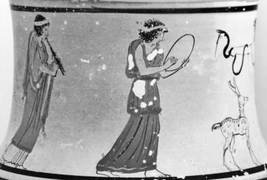 | Keywords: Sotheby Painter - White-Ground Pyxis with Maenads - Walters 482019 - Detail B.jpg Maenads women who have left their homes to follow the wine-god Dionysus dance around this pyxis or cosmetics container The animal-skin garments snakes and vine leaves are typical attributes of maenads and indicate their association with the wild Dionysian realm ca 460 450 BC Classical terracotta cm 20 1 ; cm 14 3 diam accession number 48 2019 30136 Sale Sotheby's London December 7 1920 Joseph Brummer Brummer Estate Sale Parke-Bernet Galleries New York June 8-9 1949 part III lot 12 fig 1 Walters Art Museum 1949 by purchase Museum purchase 1949 In Search of Ancient Treasure 40 Years of Collecting The Walters Art Gallery Baltimore 1978 Pandora's Box Women in Classical Greece The Walters Art Gallery Baltimore; Dallas Museum of Art Dallas; Antikenmuseum Basel und Sammlung Ludwig Basel 1995-1996 place of origin Athens Greece Walters Art Museum license Ancient Greek pottery in the Walters Art Museum Sotheby Painter Media contributed by the Walters Art Museum needs category review Ancient Greek pottery pyxides |