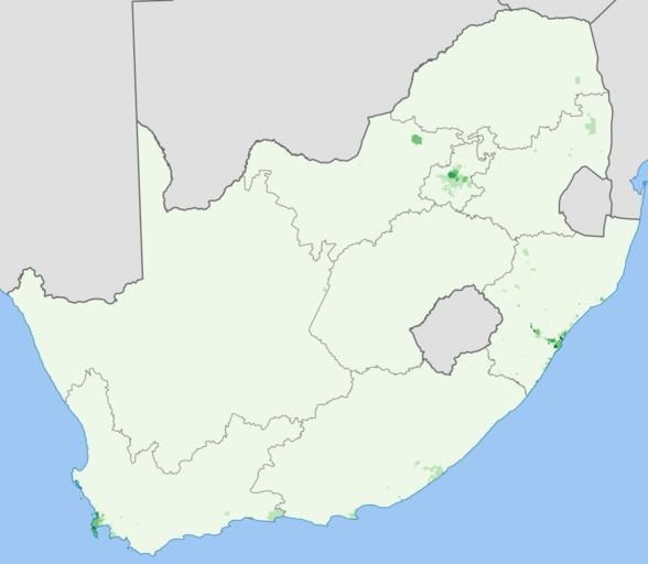 | Keywords: South Africa 2001 English speakers proportion map.svg  EDF8E9 0 “20 BAE4B3 20 “40 74C476 40 “60 31A354 60 “80 006D2C 80 “100 Projection is Albers Equal-Area Conic with standard parallels at 25 5° S and 31 5° S and origin at 28 5° S 25 5° E Statistics South Africa's Census 2001 is the source of the basic population data The map results from my own processing of the data Htonl 2010-02-22 Superseded linguistic maps of South Africa Linguistic maps of the English language Maps with Albers projection The following license applies to the population data on which the map is based http //www statssa gov za/copyrightdisclaimer asp the user acknowledges Stats SA as the source of the basic data wherever they process apply utilise publish or distribute the data and also that they specify that the relevant application and analysis where applicable result from their own processing of the data The following tag applies to the map itself  |