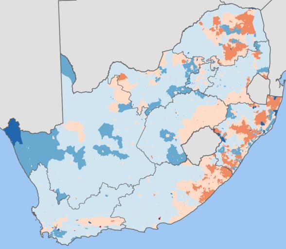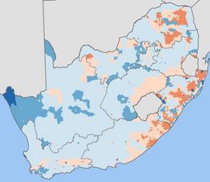 | Keywords: South Africa 2001 sex ratio map.svg b2182b >65 female ef8a62 55 “65 female fddbc7 50 “55 female d1e5f0 50 “55 male 67a9cf 55 “65 male 2166ac >65 male Projection is Albers Equal-Area Conic with standard parallels at 25 5° S and 31 5° S and origin at 28 5° S 25 5° E Statistics South Africa's Census 2001 is the source of the basic population data The map results from my own processing of the data Htonl 2010-02-20 Demographic maps of South Africa Maps with Albers projection The following license applies to the population data on which the map is based http //www statssa gov za/copyrightdisclaimer asp the user acknowledges Stats SA as the source of the basic data wherever they process apply utilise publish or distribute the data and also that they specify that the relevant application and analysis where applicable result from their own processing of the data The following tag applies to the map itself |