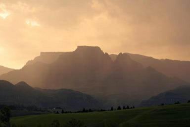 Keywords: south africa drakensburg mountains landscape natal nature tourism hiking clouds tranquil scenic rolling cliffs orange sunset grassland