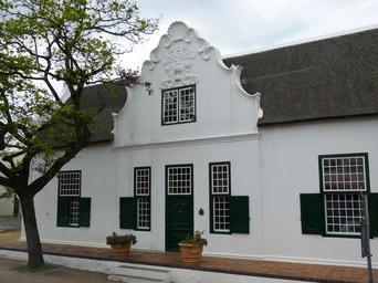 Keywords: south africa stellenbosch building cape dutch thatched roof cape town historically garden route home shutter facade old town architecture