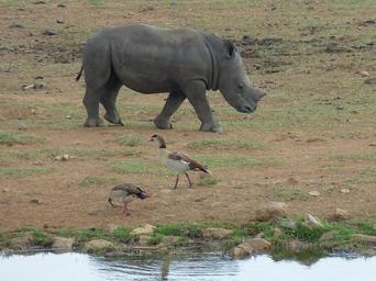 Keywords: south africa steppe savannah wilderness wildlife animal world safari water hole watering hole rhino child bird wild animal africa nature dangerous big five