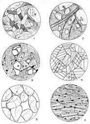 | Keywords: South African Geology - Schwarz - 1912 Fig 10.png en Figure from South African Geology - Schwarz - 1912 Page 62 Fig 10 The Structures of Rocks as shown in their Sections 1 Granite acid rock all crystalline Q quartz excess of acid ; F felspar; M white mica; B black mica; P apatite lime phosphate 2 Quartz-porphyry The quartz grains alone have had time to form; they have been corroded and the matrix is volcanic glass virtually all the substances that form the other crystals in granite melted up 3 Dolerite basic rock all crystalline M Magnetite black iron ore excess of base; o olivine altering to serpentine; A augite; F felspar 4 Marble composed of crystals of calcite; a sediment recrystallized 5 A sandstone Sandgrains water-worn held together by a small amount of iron oxide which coats the grains and colours the sandstone brown Open spaces between the grains 6 Chlorite schist A recrystallized rock scales of chlorite all in more or less parallel position with grains of magnetite and quartz between 1912 File South African Geology - Schwarz - 1912 djvu Schwarz Ernest Hubert Lewis 1873-1928 other versions PD-old-70-1923 South African geology book |