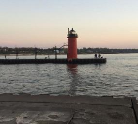 Keywords: Looking at the south pier lighthouse from the north pier in South Haven, Michigan. Rare, beautiful 75 degree day in November.