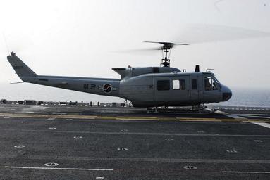 | Keywords: South Korean navy UH-1H.jpg A South Korean navy Bell UH-1H Huey helicopter lands on the flight deck of the U S Navy amphibious assault ship USS Essex LHD-2 during flight operations on 14 November 2007 U S Navy photo 071114-N-0913B-070 from the http //www essex navy mil/Photo_Gallery/November/images/page42 html USS Essex website 2007-11-14 U S Navy photo by Mass Communication Specialist Seaman Andrew Brantley PD-USGov-Military-Navy Aircraft of the Republic of Korea Navy Bell UH-1 Iroquois Aboard USS Essex LHD-2 |