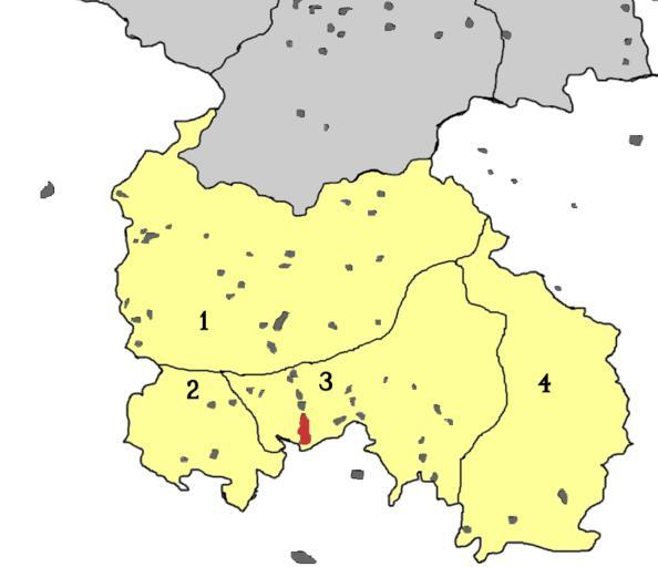 | Keywords: South Ossetia rayons and capital.png  en Rayons yellow numbered and the capital city red of the unrecognized Republic of South Ossetia The borders according to the Soviet ones Rayons 1 Dzau rayon 2 Znaur rayon 3 Tskhinval rayon 4 Leningor rayon The light grey territory to the north is North Ossetia Alania Republic of the Russian Federation; dark grey are some of the towns and villages ru Районы жёлтые п онуме ованные и столица к асная неп изнанного госуда ства ru Южная Осетия 1  Дзауский  айон 2  Знау ский  айон 3  Цхинвальский  айон 4  Ленинго ский  айон Се ым залита те  ито ия Севе ной Осетии в составе РФ Тёмно-се ые пятна  некото ые населённые пункты Locator maps of South Ossetia 2006-04-04 own assumed Slavik IVANOV  |