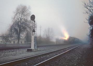 | Keywords: southern pacific southernpacific passenger train outdoor road Brian Jennison wrote this introduction. "The Superbowl was in San Francisco this year, so instead of running their annual office car train to some exotic place like Tampa or New Orleans, they ran up to Reno/Sparks and back, overnight. On the way back they had to stop and detrain here at Suisun-Fairfield because all traffic was stopped on the Suisun Bay bridges (railroad and I-680) due to an accident and sulfuric acid cloud from the Stauffer Chemical plant at Mococo, adjacent to the bridges. Later, after the all clear, the equipment deadheaded back to Oakland." Here are two runby sequences Roger Puta photographed. This 4 photo sequence is of the train eastbound at Davis, CA. Brian Jennison wrote this introduction. "The Superbowl was in San Francisco this year, so instead of running their annual office car train to some exotic place like Tampa or New Orleans, they ran up to Reno/Sparks and back, overnight. On the way back they had to stop and detrain here at Suisun-Fairfield because all traffic was stopped on the Suisun Bay bridges (railroad and I-680) due to an accident and sulfuric acid cloud from the Stauffer Chemical plant at Mococo, adjacent to the bridges. Later, after the all clear, the equipment deadheaded back to Oakland." Here are two runby sequences Roger Puta photographed. This 4 photo sequence is of the train eastbound at Davis, CA. |