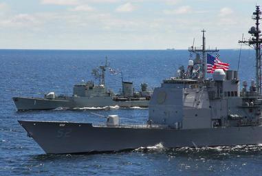 Keywords: vinson cvn70 carrier rou-01 rou01 cg-52 cg52 bunker hill bunkerhill uruguay vehicle outdoor waterfront water boat ship ferry On March 7, 2010 U.S. Ambassador to Uruguay David D. Nelson and several Uruguayan officials were invited aboard the carrier USS Carl Vinson to observe a joint exercise demonstration 50 nm off the coast of Punta del Este. Photo: U.S. and Uruguay navy ships cruise alongside the carrier. [U.S. Embassy photo by Vince Alongi / Copyright info] On March 7, 2010 U.S. Ambassador to Uruguay David D. Nelson and several Uruguayan officials were invited aboard the carrier USS Carl Vinson to observe a joint exercise demonstration 50 nm off the coast of Punta del Este. Photo: U.S. and Uruguay navy ships cruise alongside the carrier. [U.S. Embassy photo by Vince Alongi / Copyright info]