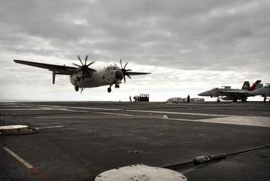 Keywords: vinson cvn70 carrier c-2 c2 greyhound cod landing outdoor airplane aircraft vehicle On March 7, 2010 U.S. Ambassador to Uruguay David D. Nelson and several Uruguayan officials were invited aboard the carrier USS Carl Vinson to observe a joint exercise demonstration 50 nm off the coast of Punta del Este. Photo: The C-2 aircraft transporting U.S. Ambassador David D. Nelson and other VIP guests arrives aboard the carrier. [U.S. Embassy photo by Vince Alongi / Copyright info] On March 7, 2010 U.S. Ambassador to Uruguay David D. Nelson and several Uruguayan officials were invited aboard the carrier USS Carl Vinson to observe a joint exercise demonstration 50 nm off the coast of Punta del Este. Photo: The C-2 aircraft transporting U.S. Ambassador David D. Nelson and other VIP guests arrives aboard the carrier. [U.S. Embassy photo by Vince Alongi / Copyright info]