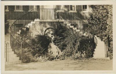 | Keywords: postcards camden camden public library camdenpubliclibrary fauns garden faunsgarden mary bok marybok benjamin turner kurtz benjaminturnerkurtz photo border outdoor A real-photo postcard showing a view of the Fauns Garden at the rear entrance of the Camden Public Library in Camden, Maine. This statue, Two Little Fauns, was donated to the library by Mary (Mrs. Edward) Bok in 1930. The sculpture features a cherub-like child figure whose arms hug a small deer that is bending down as if to drink from the water. The Two Little Fauns was the work of Baltimore-based sculptor Benjamin Turner Kurtz. A real-photo postcard showing a view of the Fauns Garden at the rear entrance of the Camden Public Library in Camden, Maine. This statue, Two Little Fauns, was donated to the library by Mary (Mrs. Edward) Bok in 1930. The sculpture features a cherub-like child figure whose arms hug a small deer that is bending down as if to drink from the water. The Two Little Fauns was the work of Baltimore-based sculptor Benjamin Turner Kurtz. |
