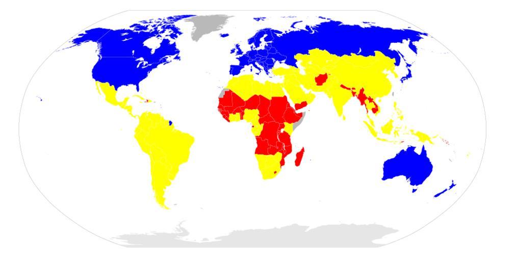 | Keywords: SOWM2010 tiers.svg en Nations evaluated in the 2010 Save the Children State of the World's Mothers report were grouped in three tiers according to economic development Nations were ranked only within a tier and some information is available only for one or two tiers Tier 1 blue; Tier 2 yellow; Tier 3 red BlankMap-World6 svg 2010-05-24 23 36 UTC BlankMap-World6 svg Canuckguy <small> talk </small> and many others derivative work Mike Serfas <span class signature-talk >talk</span> ISO 3166 Maps with Robinson projection |