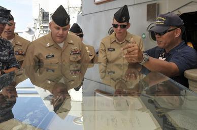 | Keywords: SOY finalists visit Pearl Harbor 150324-N-IU636-073.jpg en 150324-N-IU636-073 PEARL HARBOR March 24 2015 Hospital Corpsman 1st Class Issa Khalil a U S Pacific Fleet Sea Sailor of the Year SOY finalist left and Aviation Ordnanceman 1st Class Misty Beck a U S Pacific Fleet Shore SOY finalist attend a guided tour of the Battleship Missouri Memorial at Joint Base Pearl Harbor-Hickam The SOY finalists are participating in a variety of personal and professional evaluations as well as leadership naval heritage and team-building events throughout the week around historic Pearl Harbor U S Navy photo by Mass Communication Specialist 2nd Class Johans Chavarro/Released 2015-03-24 Petty Officer 2nd Class Johans Chavarro https //www dvidshub net/image/1838164 150324-N-IU636-073 2015-03-26 00 04 PEARL HARBOR HI US PD-USGov-Military-Navy 2015 in Pearl Harbor People at Joint Base Pearl Harbor-Hickam Battleship Missouri Memorial Images from DoD uploaded by Fæ |