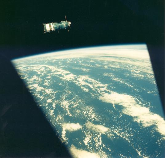 | Keywords: astp apollo-soyuz test project apollosoyuztestproject descent vehicle descentvehicle docking module dockingmodule instrument assembly module instrumentassemblymodule orbital module orbitalmodule stock photography stockphotography This scene was photographed with a handheld 70mm camera from a rendezvous window of the American Apollo spacecraft in Earth orbit during the Apollo-Soyuz Test Project (ASTP) mission. It shows the Soviet Soyuz spacecraft contrasted against a black-sky background with the Earth's horizon below. The three major components of the Soyuz are the spherical-shaped Orbital Module, the bell-shaped Descent Vehicle and the cylindrical-shaped Instrument Assembly Module. The docking system on the Orbital Module was specially designed to interface with the docking system on the Apollo's Docking Module. ASTP was a cooperative space mission between the United States and the USSR. The goals of ASTP were to test the ability of American and Soviet spacecraft to rendezvous and dock in space and to open the doors to possible international rescue missions and future collaboration on manned spaceflights. The Soyuz and Apollo crafts launched from Baikonur and the Kennedy Space Center respectively, on July 15, 1975. The two spacecraft successfully completed the rendezvous and docking on July 17th. While the Soyuz craft returned to Earth on July 21st, the Apollo craft stayed in space another 3 days, landing on July 24th in the Pacific Ocean. ASTP was a success, as not only did crews accomplish the rendezvous and docking, but they also performed in-flight intervehicular crew transfers and various scientific experiments. ASTP proved to be significant step toward improving international cooperation in space during the Cold War. This scene was photographed with a handheld 70mm camera from a rendezvous window of the American Apollo spacecraft in Earth orbit during the Apollo-Soyuz Test Project (ASTP) mission. It shows the Soviet Soyuz spacecraft contrasted against a black-sky background with the Earth's horizon below. The three major components of the Soyuz are the spherical-shaped Orbital Module, the bell-shaped Descent Vehicle and the cylindrical-shaped Instrument Assembly Module. The docking system on the Orbital Module was specially designed to interface with the docking system on the Apollo's Docking Module. ASTP was a cooperative space mission between the United States and the USSR. The goals of ASTP were to test the ability of American and Soviet spacecraft to rendezvous and dock in space and to open the doors to possible international rescue missions and future collaboration on manned spaceflights. The Soyuz and Apollo crafts launched from Baikonur and the Kennedy Space Center respectively, on July 15, 1975. The two spacecraft successfully completed the rendezvous and docking on July 17th. While the Soyuz craft returned to Earth on July 21st, the Apollo craft stayed in space another 3 days, landing on July 24th in the Pacific Ocean. ASTP was a success, as not only did crews accomplish the rendezvous and docking, but they also performed in-flight intervehicular crew transfers and various scientific experiments. ASTP proved to be significant step toward improving international cooperation in space during the Cold War. |