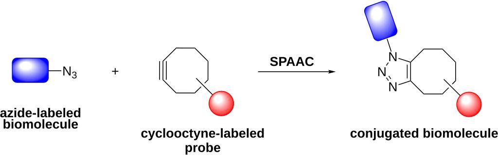 Keywords: SPAAC Reaction.svg en Strain-promoted azide-alkyne cycloaddition 2012-11-05 16 48 34 own Maksim Fomich cc-zero Uploaded with UploadWizard Chemical reactions Azides