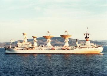 | Keywords: Space control-monitoring ship "Kosmonaut Yuri Gagarin" in 1987 (2).png A port beam view of the Soviet space control-monitoring ship KOSMONAUT YURIY GAGARIN underway Вид сбоку на научно-исследовательское судно «Космонавт Ю ий Гага ин» Note This image is retouched it lacks bottom part http //www defenseimagery mil; http //www defenseimagery mil/imagery html guid c9da9cacfa7b3419cff57d6ba1a875d44439891c VIRIN DN-SC-87-06823 1987-05-15 Author PD-USGov Kosmonaut Yuri Gagarin ship 1971 | ||||