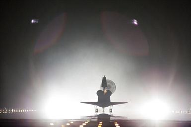 Keywords: space shuttle landing night mist astronaut spaceship parachute runway lights spacecraft