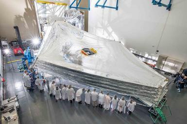 Keywords: space telescope telescope sunshield manufacturing scientists inspection space test technology james webb cosmos science scientific astronomy precision