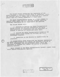 | Keywords: Space Transportation System - NARA - 198174.jpg Scope and content General notes 198174 Local identifier President 1981-1989 Reagan National Security Council 1981 - 1989 Ronald Reagan Library NLRR 40 Presidential Drive Simi Valley CA 93065-0600 Record group Collection RR-NSC Numbered National Security Policy Papers 1981 - 1989 Record group ARC 1189 National Security Decision Directives compiled 02/25/1981 - 01/19/1989 Series ARC 198166 File unit File unit ARC Variant control numbers NAIL Control Number NLS-NSC-NSDD-8U Other versions <gallery> File Space_Transportation_System_-_NARA_-_198174 tif tif File Space_Transportation_System_-_NARA_-_198174 jpg jpg </gallery> NARA-cooperation PD-USGov Presidential Decision Directives Reagan |