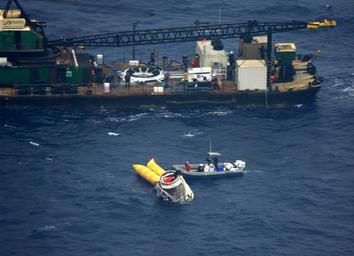 | Keywords: Space X water3.JPG en The Dragon spacecraft floats next to the barge that will carry it back to shore after the mission that made SpaceX the first commercial company to send a spacecraft to the International Space Station 2012-05-31 http //spacexlaunch zenfolio com/p208064181/h3dbaea42 h3dbaea42 NASA/US Navy PD-USGov Dragon C2+ Uploaded with UploadWizard Rigid-hulled inflatable boats Barges of the United States | ||||