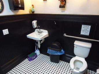| Keywords: Spacious clean bathroom with artwork on walls and two mirrors at the Maplewood Deli & Grille in New Jersey.JPG en The bathroom was clean and well decorated with artwork on the walls and two mirrors a half-length door mirror not shown in photo At the Maplewood Deli Grille Maplewood NJ Further information http //www maplewooddeli com/ 2016-01-14 13 37 32 own Tomwsulcer other versions cc-zero Bathrooms in New Jersey Restaurants in New Jersey Maplewood New Jersey | ||||