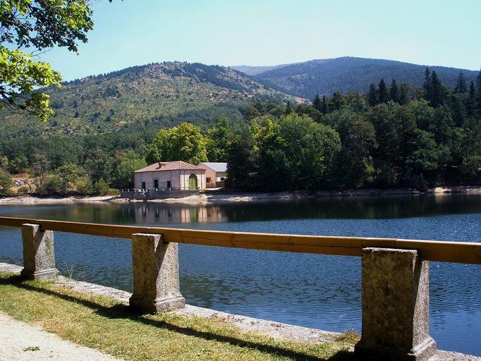 Keywords: spain river lake water mountains forest trees lookout building reflections summer spring nature outside
