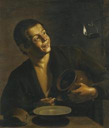 | Keywords: Spanish School - A young man eating by the light of an oil lamp.jpg century 17 century 17 oil canvas cm 74 5 63 9 accession number object history Anonymous sale Milan Sotheby's 14 June 2011 lot 62 as Giovanni Crivelli called Crivellino credit line http //www sothebys com/en/auctions/ecatalogue/2012/old-master-early-british-paintings-l12030/lot 92 lotnum html Sotheby's London 2012 05 02 L12030 lot 92 PD-old-100 Portrait paintings of men 17th-century portrait paintings Images from Sotheby's |