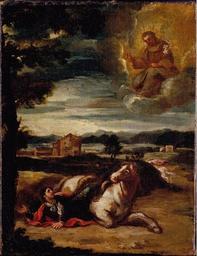 | Keywords: Spanish - St Anthony of Padua appearing to a Knight - Google Art Project.jpg 604024 Spanish /collection/dulwich-picture-gallery/artwork/st-anthony-of-padua-appearing-to-a-knight-spanish/542084/ Spanish School /artist/francois-antoine-chevrier/4130498/ 4130498 /collection/dulwich-picture-gallery/ Dulwich Picture Gallery 363171 http //www dulwichpicturegallery org uk/ 12/28/2011 11 54 55 PM /collection/dulwich-picture-gallery/artwork/st-anthony-of-padua-appearing-to-a-knight-spanish/542084/ 1600 17 century Spanish Oil Canvas London Sir Francis Bourgeois 1811; Bourgeois Bequest 1811; 1813 inv no as by Vélazquez 397 542084 False 1699 3/24/2012 3 18 00 AM 13 Painting 1600 1700 w305 x h397 cm 17 century False 0 767578125 Object st-anthony-of-padua-appearing-to-a-knight-spanish St Anthony of Padua appearing to a Knight s 305 Bourgeois Sir Peter Francis Bequest 1811 Oil London Sir Francis Bourgeois 1811; Bourgeois Bequest 1811; 1813 inv no as by Vélazquez Canvas Spanish special url_id twE0o3PzOup63Q PD-old-100 Google Art Project works by unknown artist Spain 17th-century unidentified painters 17th-century paintings of Saint Anthony of Padua 17th-century paintings of horses |