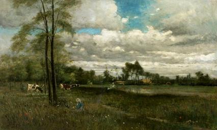 | Keywords: Spányi Glade with grazing cattle.jpg Artwork Q26270620 Creator Béla Spányi 1885 Oil on canvas cm 70 115 Institution National Museum Warsaw Not on view accession number 186692 object history credit line http //cyfrowe mnw art pl/dmuseion/docmetadata id 21908 show_nav true cyfrowe mnw art pl https //pl pinterest com/pin/418905202815001717/ pl pinterest com PD-old-100 DEFAULTSORT 1885; Glade with grazing cattle Paintings by Béla Spányi 19th-century paintings in the National Museum in Warsaw Landscape paintings in the National Museum in Warsaw Hungarian paintings in the National Museum in Warsaw 1885 paintings |