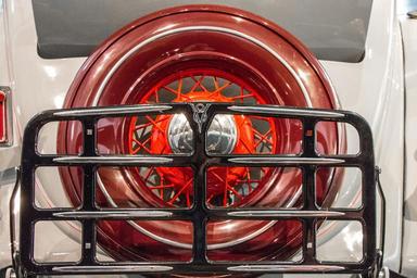 | Keywords: spare tire cover grill roadster vintage v8 logo symbol metallic red orange wire spoke classic car grate 1930s american antique auto automobile beige century chrome classy clean coupe cover cream dad day deco design historic hubcap case enclosure tire spare rail shine reflection lights round circle silver trunk |