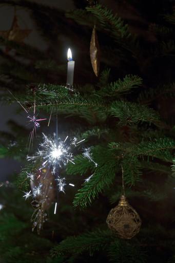 Keywords: sparklers christmas tree candles baubles darkened room atmospheric christmas eve