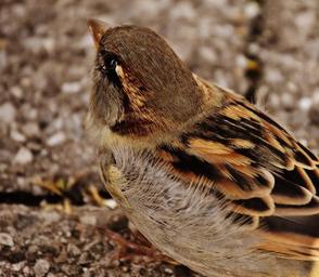 Keywords: sparrow bird small cute nature plumage young birds sparrows foraging wing close animal sperling
