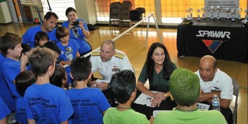 | Keywords: SPAWAR Sponsors Lego Robotics Tournament 121104-N-UN340-022.jpg en U S Navy Rear Adm Patrick H Brady left Commander Space and Naval Warfare Systems Command SPAWAR ; Ms Carmela Keeney Technical Director Space and Naval Warfare Systems Center Pacific SSC Pacific and SSC Pacific Command Master Chief Master Chief Logistics Specialist Diosdado Metra meet competitors prior to the start of the SPAWAR-sponsored For Inspiration and Recognition of Science and Technology FIRST LEGO league robotics qualifying tournament at Eastlake High School FIRST robotics competitions combine the excitement of sports with science and technology and create a unique opportunity for students to compete for scholarships while designing building and programming robots with professional engineers More that 60 SPAWAR volunteers assisted in the event As the Navy's Information Dominance systems command SPAWAR supports and strongly encourages students to pursue careers in the Science Technology Engineering and Mathematics STEM fields U S Navy photo by Rick Naystatt/Released 2012-11-04 Rick Naystatt https //www dvidshub net/image/776533 121104-N-UN340-022 2012-11-06 11 06 CHULA VISTA CA US PD-USGov-Military-Navy Space and Naval Warfare Systems Command Images from DoD uploaded by Fæ |