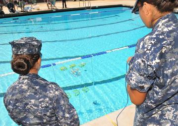 | Keywords: SPAWAR supports SeaPerch San Diego STEM event 130427-N-UN340-001.jpg en Naval Sea Cadets successfully pilot their SeaPerch Remotely Operated Vehicle ROV through the deep-water mission portion of the San Diego Regional SeaPerch Competition at Grossmont College SeaPerch sponsored by the Office of Naval Research is an innovative underwater robotics program that trains teachers to teach their late elementary through high school students how to build ROVs from low-cost kits Several Space and Naval Warfare Systems Command SPAWAR personnel volunteered as judges timekeepers and in-water assistants at the event As the Navy's Information Dominance Systems Command SPAWAR supports robotics development and strongly encourages all students to explore careers in science technology engineering and mathematics STEM fields U S Navy photo by Rick Naystatt/Released 2013-04-27 Rick Naystatt https //www dvidshub net/image/919358 130427-N-UN340-001 2013-05-01 12 10 SAN DIEGO CA US PD-USGov-Military-Navy Space and Naval Warfare Systems Command Office of Naval Research Images from DoD uploaded by Fæ |