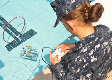 | Keywords: SPAWAR supports SeaPerch San Diego STEM event 130427-N-UN340-004.jpg en A Naval Sea Cadet pilots her SeaPerch Remotely Operated Vehicle ROV through the obstacle course mission of the San Diego Regional SeaPerch Competition at Grossmont College SeaPerch sponsored by the Office of Naval Research is an innovative underwater robotics program that trains teachers to teach their late elementary through high school students how to build ROVs from low-cost kits Several Space and Naval Warfare Systems Command SPAWAR personnel volunteered as judges timekeepers and in-water assistants at the event As the Navy's Information Dominance Systems Command SPAWAR supports robotics development and strongly encourages all students to explore careers in science technology engineering and mathematics STEM fields U S Navy photo by Rick Naystatt/Released 2013-04-27 Rick Naystatt https //www dvidshub net/image/919365 130427-N-UN340-004 2013-05-01 12 12 SAN DIEGO CA US PD-USGov-Military-Navy Space and Naval Warfare Systems Command Office of Naval Research Images from DoD uploaded by Fæ |