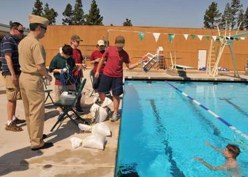 | Keywords: SPAWAR supports SeaPerch San Diego STEM event 130427-N-UN340-012.jpg en Capt D J LeGoff Tactical Network Program Manager PMW 160 observes a team of Boy Scouts remove their team's SeaPerch Remotely Operated Vehicle ROV from the pool following the deepwater mission portion of the San Diego Regional SeaPerch Competition at Grossmont College SeaPerch sponsored by the Office of Naval Research ONR is an innovative underwater robotics program that trains teachers to teach their late elementary through high school students how to build ROVs from low-cost kits LeGoff and several Space and Naval Warfare Systems Command SPAWAR personnel volunteered as judges timekeepers and in-water assistants at the event As the Navy's Information Dominance Systems Command SPAWAR supports robotics development and strongly encourages all students to explore careers in science technology engineering and mathematics STEM fields U S Navy photo by Rick Naystatt /Released 2013-04-27 Rick Naystatt https //www dvidshub net/image/919383 130427-N-UN340-012 2013-05-01 12 18 SAN DIEGO CA US PD-USGov-Military-Navy Space and Naval Warfare Systems Command Office of Naval Research Images from DoD uploaded by Fæ |